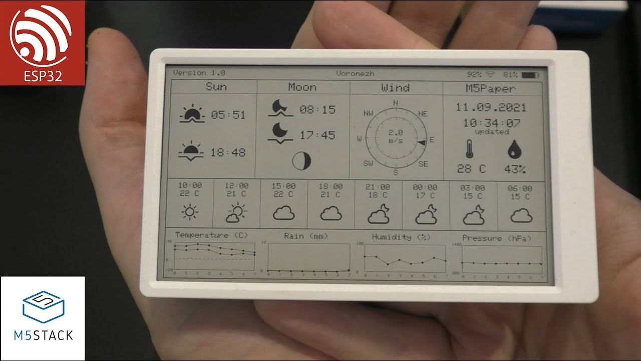 ✨ Официальный каталог M5Stack на русском языке: https://ru.m5stack.com/?r=U_Pavla M5Stack на русском в социальных сетях: – YouTube: https://www.youtube.com/channel/UC6PrKdHxIJ0GnHhAm9ZH6zA – Одноклассники: https://ok.ru/m5stack – facebook: https://www.facebook.com/ru.m5stack – Telegram: https://t.me/ru_m5stack – VK: https://vk.com/m5stack – Twitter: https://twitter.com/ru_m5stack Скидка на любой заказ в M5Store -5% по промокоду: M5Stack5 Узнать больше и приобрести продукт из видео: https://ru.m5stack.com/sku/K049-B#mainr=U_Pavla ================================================ Кэшбэк возврат до 15% от покупки на Alixpress : http://ali.pub/51dh2x ================================================ Помощь каналу: http://www.donationalerts.ru/r/ypavla Скетч для вывода изображения можно найти тут: http://psenyukov.ru/%d0%b2%d1%8b%d0%b2%d0%be%d0%b4-%d0%b8%d0%b7%d0%be%d0%b1%d1%80%d0%b0%d0%b6%d0%b5%d0%bd%d0%b8%d1%8f-%d0%bd%d0%b0-m5paper/ Проект метеостанции тут: https://github.com/Bastelschlumpf/M5PaperWeather