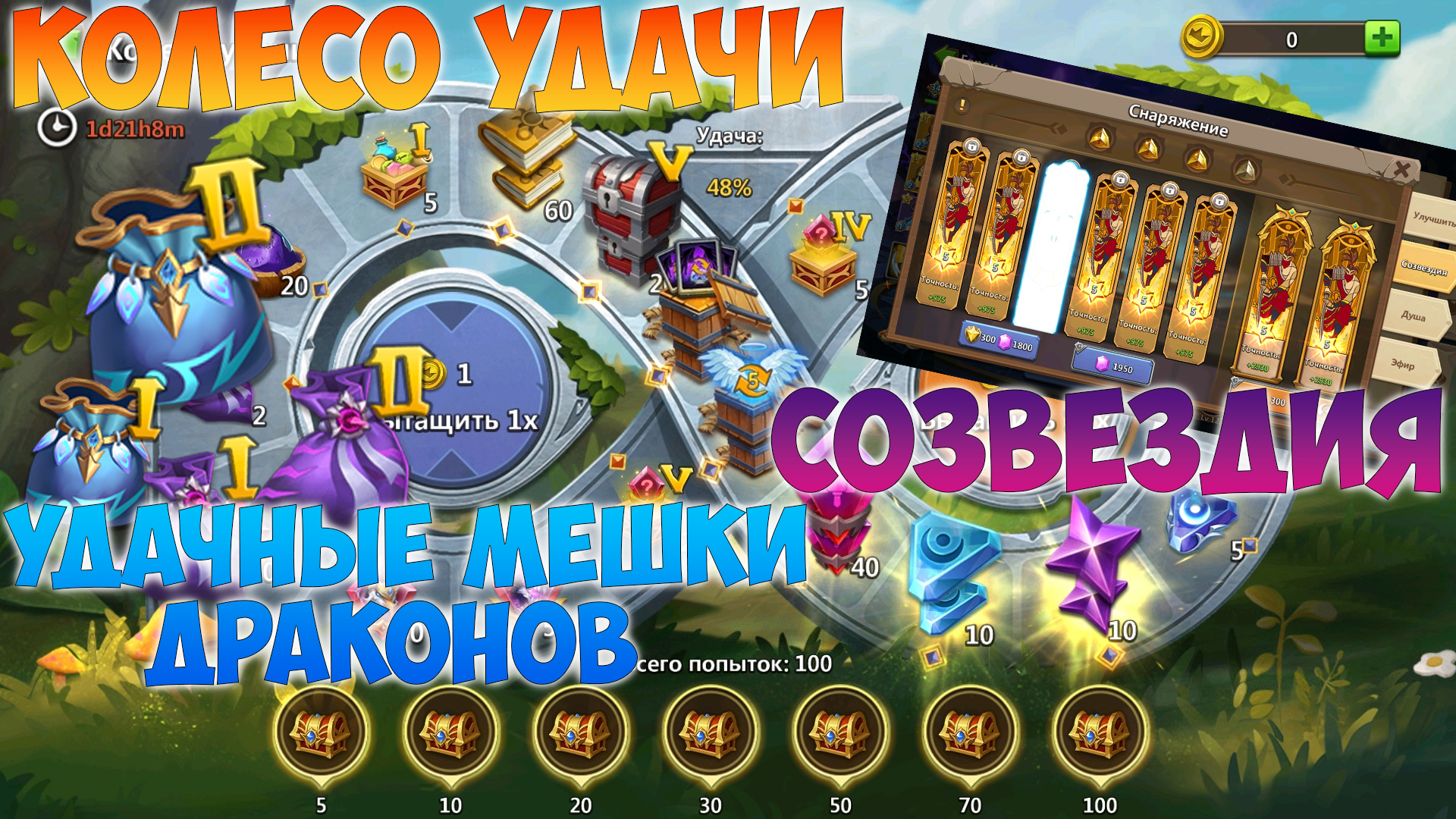 КОЛЕСО УДАЧИ КАК@ШКА, АЛМАЗНЫЙ НАЙМ КРУТЯШКА, Битва замков, Castle Clash