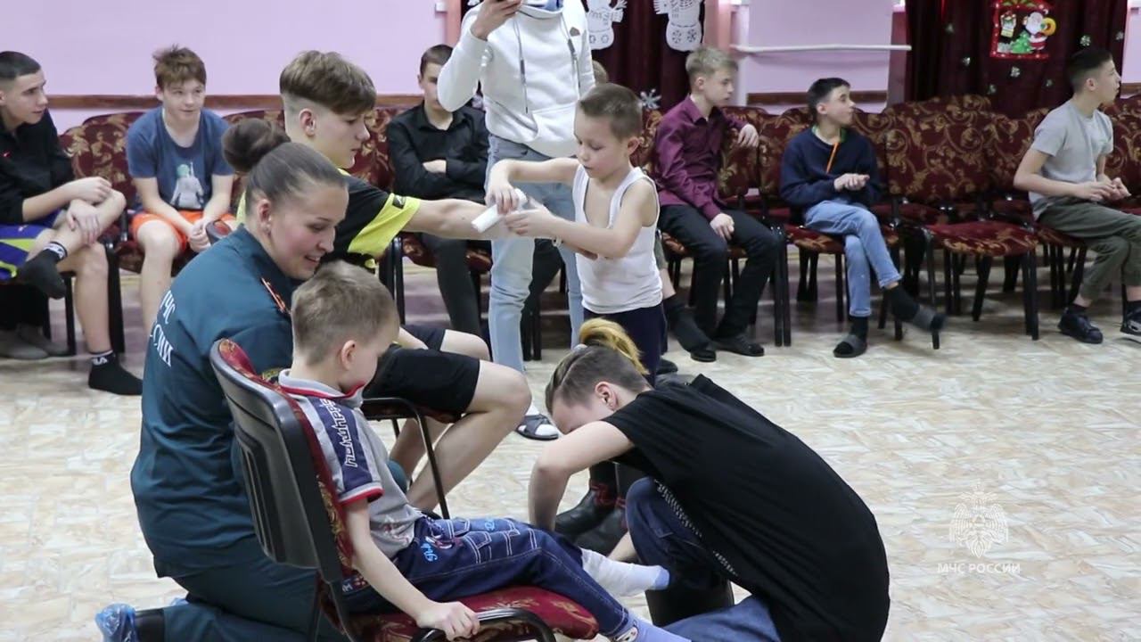 Сотрудники МЧС России и Дед Мороз в гостях у детей