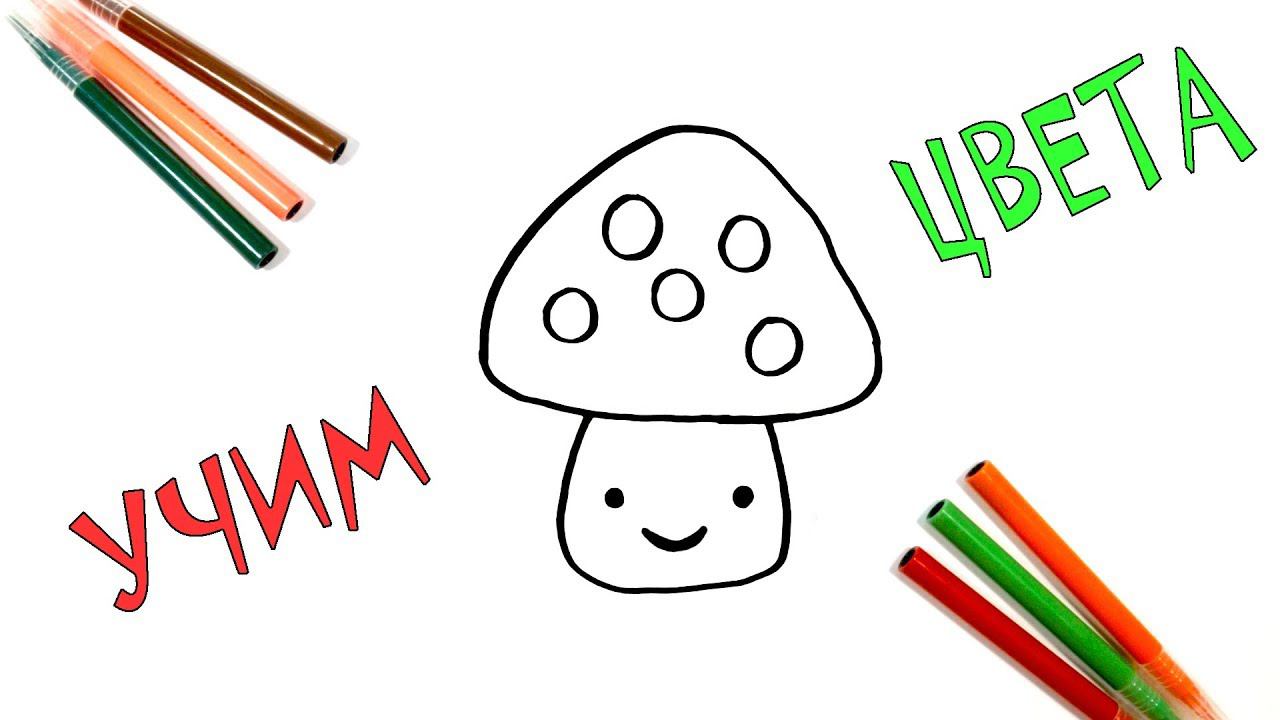 УЧИМ ЦВЕТА.МУХОМОР.Рисуем и раскрашиваем мухомор