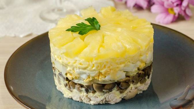 Изысканность и простота в одном блюде. САЛАТ С АНАНАСАМИ, КУРИЦЕЙ И ГРИБАМИ