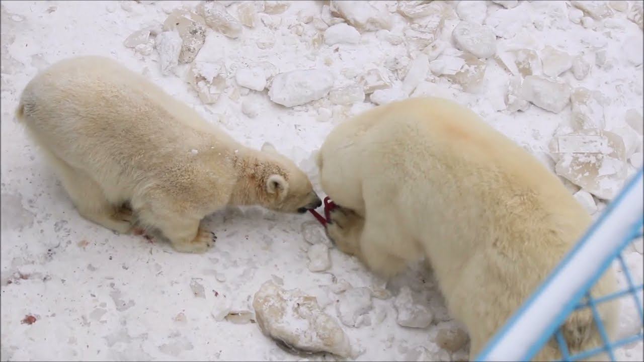 Герда родилась в Москве 20 ноября 2007 года. Её мама Симона, папа Врангель. В Новосибирск переехала 05.08.2008. В 2013 году у Герды и Кая родилась Шилка. В 2015 году она переехала в Японию. В 2015 году родился Ростик. 6 декабря 2018 года он переехал в Китай. В 2018 году родились Норди и Шайна. Данная пара молодых медведей находилась вне экспозиции зоопарка, поэтому посетители не могли их видеть. Передача молодых медведей в другой зоопарк не планируется, — ответили на запрос редакции в пресс-центре мэрии Новосибирска. Но Шайна 20 января 2024 года переехала в Ижевский зоопарк. Белые медведи одиночные животные. Как правило, миролюбивы по отношению друг к другу, но между самцами в брачный период случаются стычки. Взрослые самцы могут нападать на медвежат. Гон с марта по июнь. Продолжительность жизни — максимум 25—30 лет; в неволе рекорд долгожительства — 42 года. Вес очень крупных самцов в некоторых частях ареала 700 и даже 800 кг: есть данные о зверях весом до 1000 кг. Обычно вес меньше. Самки всегда не только меньше, но и значительно легче самцов. Так, самцы в восточной Гренландии в состоянии нормальной упитанности весят 400—450 кг, хорошо упитанные — до 500 кг, самки, даже очень сытые, здесь же редко весят больше 350—380 кг, т. е. их вес составляет около 75% веса самцов. Длина тела на 3-й день после рождения 28—32 см, средний вес — около 755 г (650—840 г). На 26-й день длина тела увеличивается незначительно — до 35—38 см, а вес возрастает до 1125—1275 г. В возрасте 60 дней самцы весят около 7 кг, самки — около 6 кг при длине тела у первых 58—60 см, у вторых 54—58 см. В возрасте 4 месяца медвежата достигают веса 22—23 кг, в 6-месячном возрасте при длине около 110 см — 40—43 кг, в 8-месячном — 58—62 кг. Длина тела в возрасте с 6 до 9 месяцев нарастает по 6—7 см в месяц. Во время зимнего сна рост почти прекращается. В зоопарке медведей кормят утром морской рыбой, хлеб с рыбьим жиром внутри, морковь, яблоки, морская капуста, яйцо дают сырое. Медвежат подкармливают молоком из соски. На ужин мясо (говядина, конина, куры или индейка). Летом и осенью арбузы, дыни, ранетки, кабачки, тыквы, огурцы. Когда показательное кормление летом бросают живую рыбу. Медвежата с медведицей находятся до 2-х лет. 16 декабря 2022 года Герда родила 2-х медвежат. И это две девочки! Имена дали 25 июня. Медвежат зовут Стрелка и Белка. Обзор вольеров белых медведей https://www.youtube.com/watch?v=mAt_b7JD0B4&list=PLGvf0V-rAHxkpGKJaWIZIUxRKgKiqV3xZ&index=17&t=0s