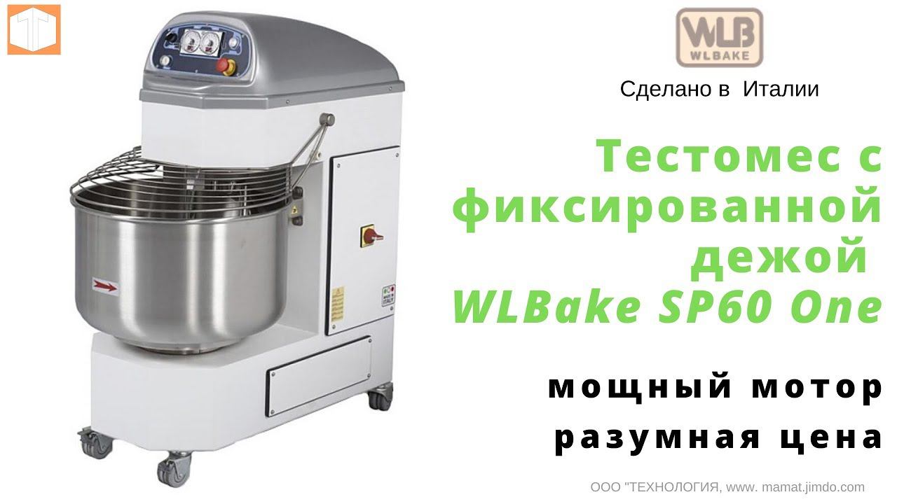 Компания ТЕХНОЛОГИЯ предлагает не очень дорогой , качественный и с современным дизайном : Итальянский Тестомес с фиксированной дежой WLBake SP60 One Тестомесильные машины WLBake используются для интенсивного замеса теста (в том числе с пониженной влажностью) из пшеничной и ржано-пшеничной муки. Оснащены двумя электронными таймерами, позволяющими регулировать время работы тестомеса на 1-й и 2-й скорости. Данное оборудование оптимально для различных предприятий общественного питания, так как применение тестомеса обеспечивает превосходное качество замеса и снижает трудовые и временные затраты на приготовление теста. Модель SP 60 One оснащена одним мощным мотором, вращающим спираль и дежу, вследствие чего отсутствует возможность реверса дежи, но обеспечивается разумная стоимость тестомеса высокого класса надежности. Бренд: WLBake Загрузка^:(кг)60 Материал корпуса: Окрашенный металл Мощность (Вт): 3 000 Напряжение (В): 380 Длина (мм): 1 180 Ширина (мм): 630 Высота (мм): 1 312 ЕЩЕ БОЛЬШЕ ИНТЕРЕСНЫХ ВИДЕО: - Оборудование для Гигиены и Сан зоны: https://is.gd/XFoa6o - Электромеханическое оборудование: https://is.gd/pTGiiO - Тепловое оборудование: https://is.gd/GkKbch - Упаковочное оборудование: https://is.gd/oXslKl - Хлебопекарное оборудование: https://is.gd/fIsYg9 - Мясоперерабатывающее оборудование: https://is.gd/j2IXnh - Фаст-фуд оборудование: https://is.gd/QxovSw - Холодильное оборудование: https://is.gd/lna82B __________________________________ Спасибо за просмотр! Стоимость доставки будет рассчитана после обработки заявки. Более подробную информацию о оборудовании и ценах можете получить у наших менеджеров по тел.: (4852) 97-54-77, 90-69-80; 90-69-77. 8-800-511-83-07 (Бесплатно по России) https://manat.jimdo.com _ Присоединяйтесь к нам в соцсетях! ВК — https://vk.com/public156843085 Facebook —https://www.facebook.com/diskont76 Твиттер — https://twitter.com/Technology76 Инстаграм -- https://www.instagram.com/diskont76/ ОК -- https://ok.ru/diskont76