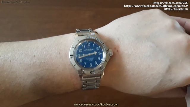Часы Восток "Командирские" 020716 и Восток "Амфибия" 120812. Сравнение на запястье. МОДЕЛЬ 2416/020716 Механизм механический "Восток 2416Б". Количество камней – 31. Механизм калибра 24 мм с центральной секундной стрелкой. Автоподзавод с предохранительным устройством от перезаводки пружины. Календарь мгновенного действия. Частота: 19800 полуколебаний/час. Корпус: нержавеющая сталь (кольцо корпусное, диск времени, заводная головка, задняя крышка часов). Часовые метки и стрелки заполнены флуоресцентной краской переменного действия. Органическое стекло. Водозащита: 20 атмосфер (200 метров). Браслет из нержавеющей стали. Энергетический запас одного завода пружины – не менее 31 часа. Средний суточный ход: -20… +60 секунд в сутки. Средний срок службы механизма – 10 лет. Габариты: диаметр - 41,5 мм, высота - 15 мм. МОДЕЛЬ АМФИБИЯ 2415.01/120812 Механизм механический "Восток 2415.01". Количество камней – 31. Автоподзавод с предохранительным устройством от перезавода пружины. Центральная секундная стрелка. Противоударное устройство узла баланса. Корпус: нержавеющая сталь (кольцо корпусное, диск времени, головка заводная, задняя крышка часов). Часовые метки и стрелки заполнены флуоресцентной краской переменного действия. Органическое стекло. Водозащита: 20 атмосфер (200 метров). Браслет из нержавеющей стали. Энергетический запас одного завода пружины – не менее 33 часов. Средний суточный ход: -20… +60 секунд в сутки. Средний срок службы механизма – 10 лет. - ГЛАВНАЯ СТРАНИЦА КАНАЛА: https://www.youtube.com/c/SamLongbow МОИ КОНТАКТЫ: https://vk.com/sam7755 https://ok.ru/profile/89008161645 https://www.facebook.com/alleyne.edricson.9 http://alleyne.ru
