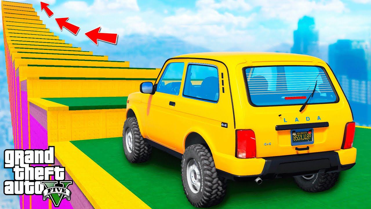 КАК ДАЛЕКО ЛАДА НИВА СМОЖЕТ ЗАБРАТЬСЯ ПО СТУПЕНЬКАМ ЛЕСТНИЦЫ в ГТА 5 МОДЫ ЭКСПЕРИМЕНТЫ в GTA 5 MODS