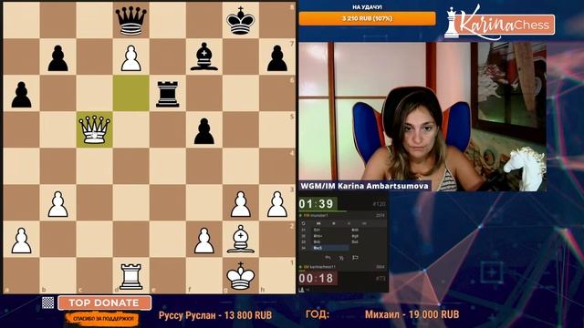 3-х часовая Арена по 3 минуты против титулованных шахматистов. Поддержать канал: https://www.donationalerts.com/r/karinachess1 Обучающее сообщество: https://boosty.to/karinachess Подписаться на мой канал: https://www.youtube.com/channel/UChor8u_hhgrjX2lt0QLzZHA?sub_confirmation=1 Рестрим: https://www.twitch.tv/karinachess1 Рада приветствовать Вас на канале женского международного гроссмейстера, международного мастера Карины Амбарцумовой! Я - профессиональная шахматистка и тренер. Здесь вы сможете найти обучающие видеоуроки по шахматам, комментарии турниров, стримы моей игры в блиц шахматы. Подписывайтесь на мои странички в соц.сетях: ВКонтакте: https://vk.com/karinachessclub Telegram: https://t.me/karinachess Twitch: https://www.twitch.tv/karinachess1 Почта для связи: karinachess@mail.ru Мой сайт: http://chesscoach.ru/ #шахматы #КаринаАмбарцумова #стримшахмат #шахматыблиц