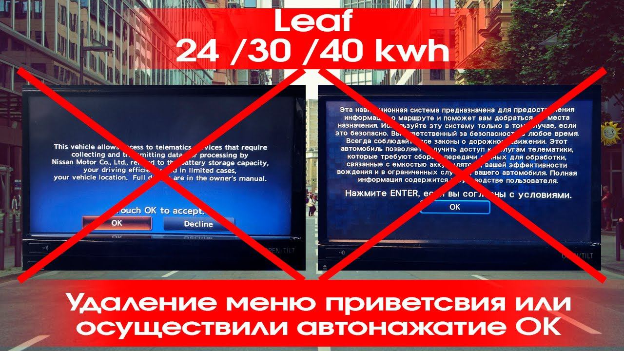 Nissan Leaf (2010-2020) - удалили меню подтверждения OK. Больше его нет или автонажатие! Автомобили Nissan Leaf которые выпускаются для рынков Европы и Америки всегда имеют меню подтверждения о том что Водитель берет на себя ответственность при пользовании навигации. Актуальная версия для наших клиентов https://drive.google.com/open?id=1NVcf-qX5IylebRW1PmhgR3lU42tGJr-2&authuser=xanavi.eng%40gmail.com&usp=drive_fs В автомобилях с Японского рынка, это меню отсутствует. Мы разумеется предоставили своим клиентам возможность избавиться от этого всем ненавистного меню. По умолчанию Все наши прошивки больше не имеют этого меню или кнопка сама быстро нажимается. Работы проводила компания Xanavi.ru Звоните, пишите, обращайтесь +79626860739