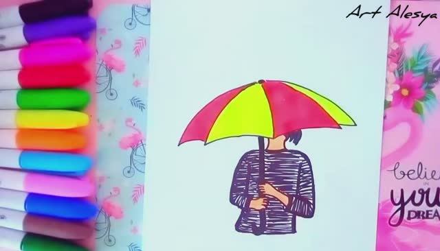 Рисую девушку с ярким зонтом!