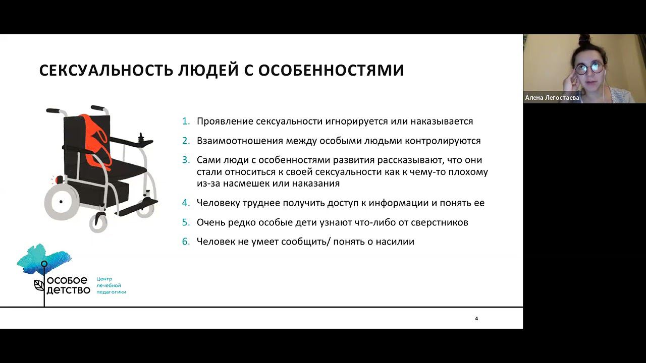 Сексуальное образование особых детей в большинстве семей не происходит совсем в силу разных причин – кто-то считает, что ребенок ничего не поймет, кто-то боится «слишком заинтересовать», кто-то из родителей не может себе представить особого ребенка достаточно взрослым, чтобы говорить «про это». Зачем говорить о сексуальности, теле и взрослении с особыми детьми, подростками и взрослыми? Что говорить, как и когда? На эти и другие вопросы ответит ведущая вебинара Алена Легостаева. Ведущая: Алена Легостаева, психолог-консультант, эксперт ЦЛП «Особое детство», руководитель программы «Рабочий полдень» для особых молодых людей Мероприятие организовано при поддержке Грантов Мэра Москвы для социально ориентированных НКО Комитета общественных связей и молодежной политики города Москвы и Благотворительного фонда «Вклад в будущее» ----------------------------------------------------------------------------------------------------------------- ЭМЦ — учебный центр, созданный ЦЛП "Особое детство" . Подробная информация и запись на семинары по ссылке http://emc.ccp.org.ru/?utm_source=you... Наш телеграм-канал: https://t.me/osoboeobrazovanie Наша группа в ВК: https://vk.com/emcmoscow По всем вопросам Вы можете связаться с нами: : emc@ccp.org.ru