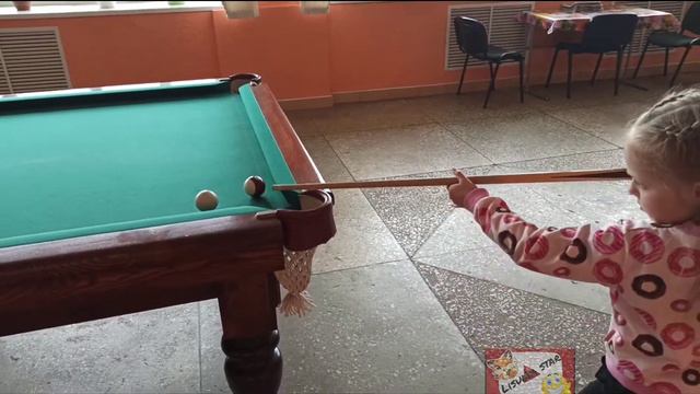 Алиса впервые играет в бильярд. Ребенок и бильярд. Позитив / Лисуня Стар