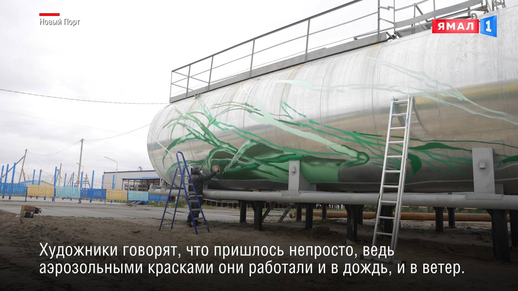 «Знакомьтесь. Ину»: в Новом Порту появилось пять муралов – на старой барже, цистерне и метеостанции