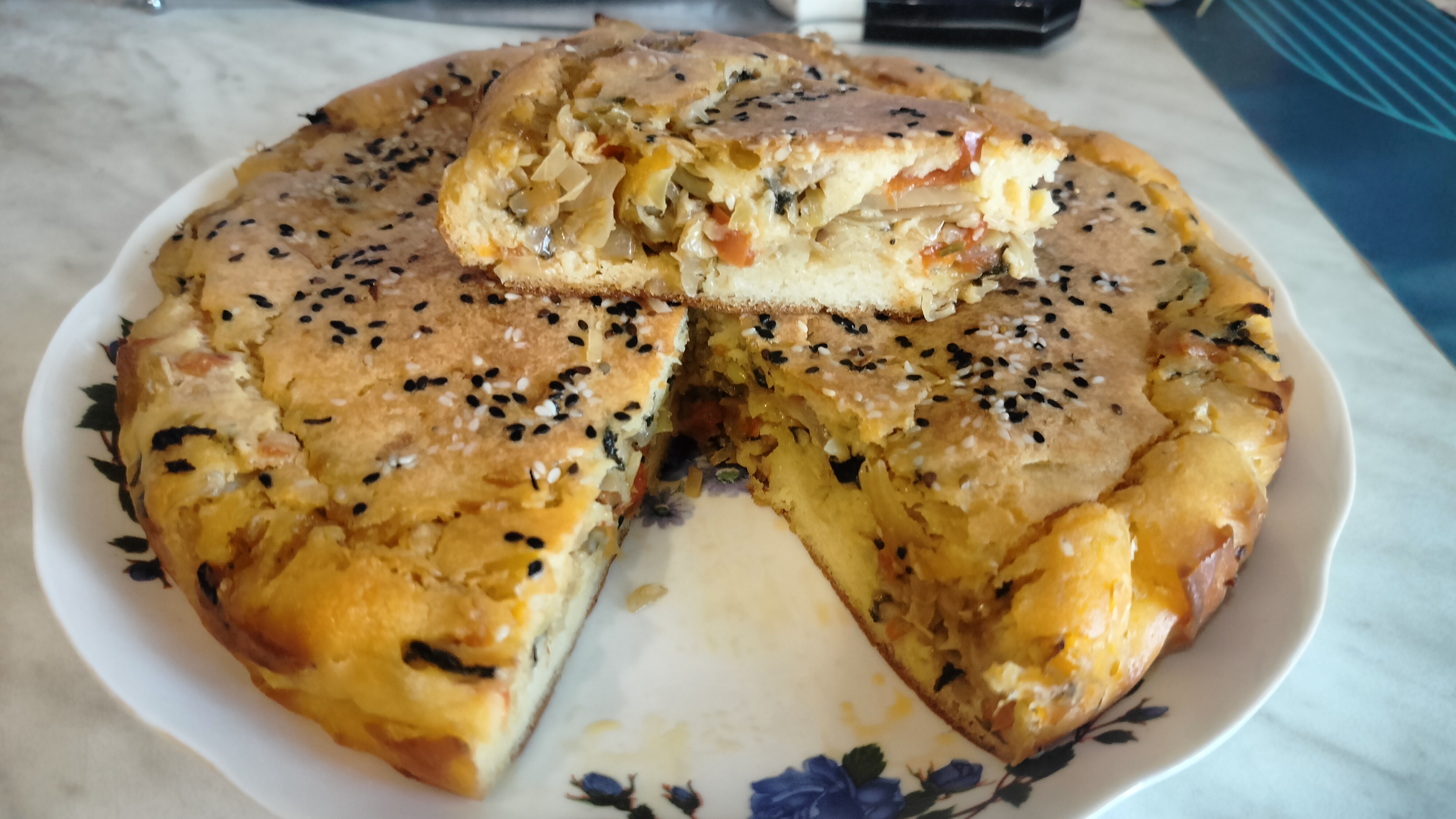 Заливной пирог с капустой.