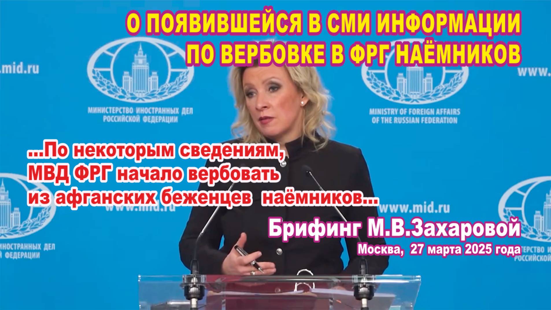 Из брифинга М.В. Захаровой 27.03.2025. О появившейся в СМИ информации о вербовке в ФРГ наемников.