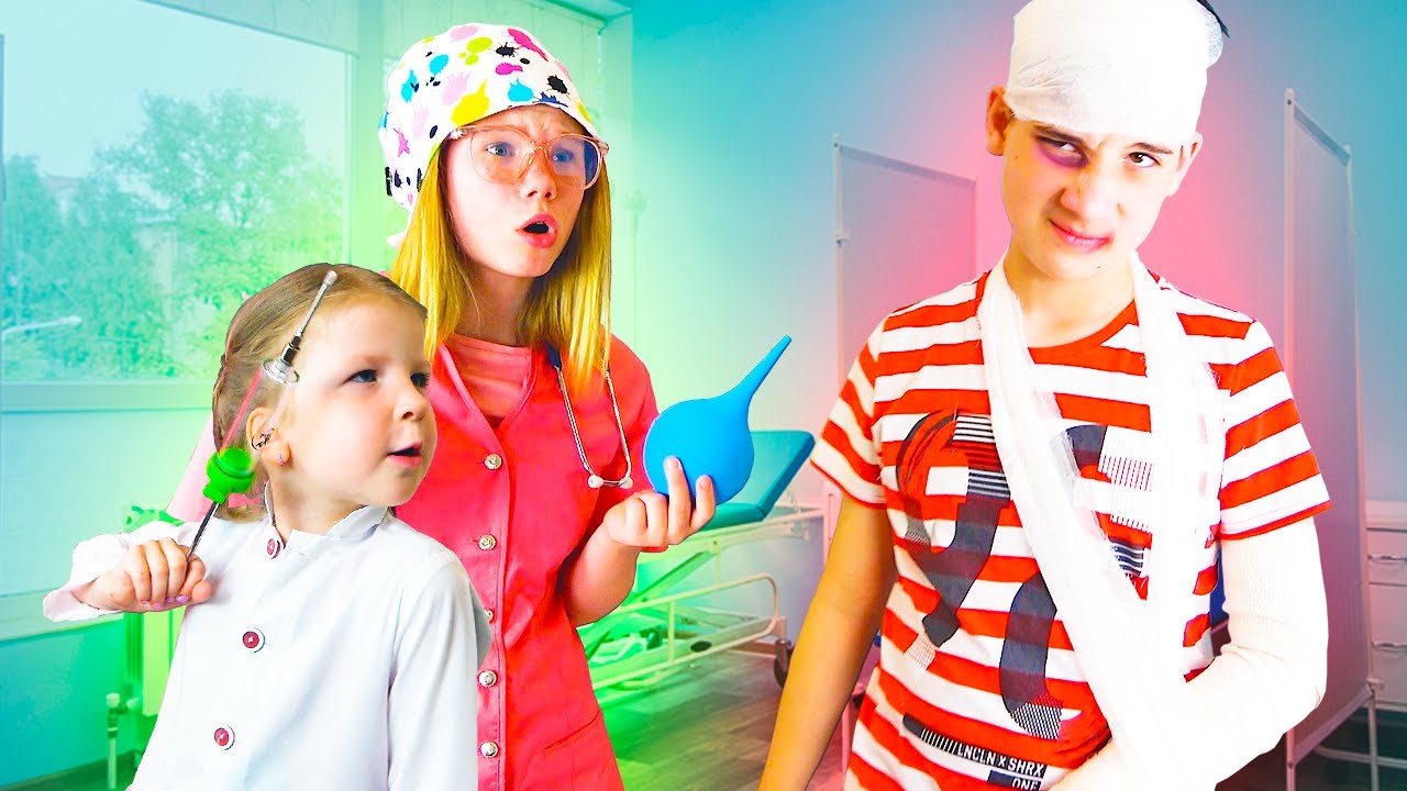 Дети играют в доктора и больницу и лечат уколами пациента хулигана Сборник