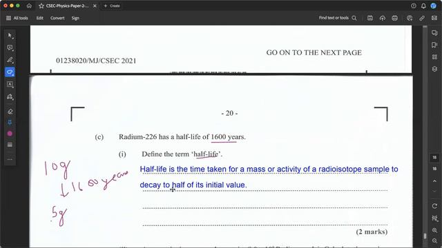 CSEC Physics - June 2021 - Paper 2 Solutions - Question 6 - Radioactivity - Alpha Particle Emissio