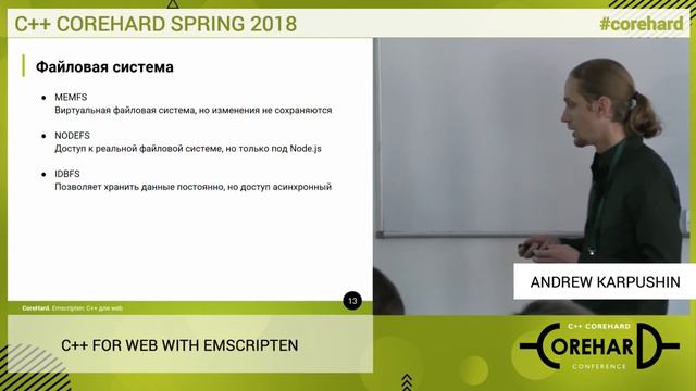 CoreHard Spring 2018. Андрей Карпушин. C++ для web с помощью Emscripten