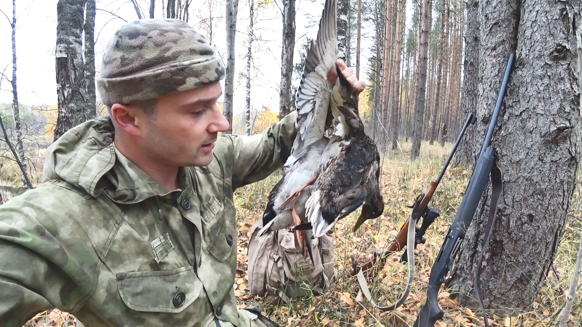 ОХОТА НА УТКУ ПО ЛЕСНОЙ РЕКЕ. СКРАДЫВАЮ БОЛЬШУЮ СТАЮ ТЕТЕРЕВА. Добыча радует!!!