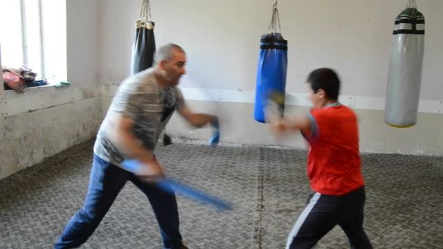 Тренировка на лапах и на нудлами. Тренер Геворг Саргсян