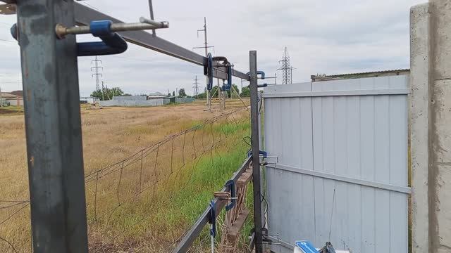 Работы и самоделки . Проффель прикрутил струбцинами к столбам подготовился к сварке одной стороны . И последние два метра одной стороны тоже подготовил к сварке .
