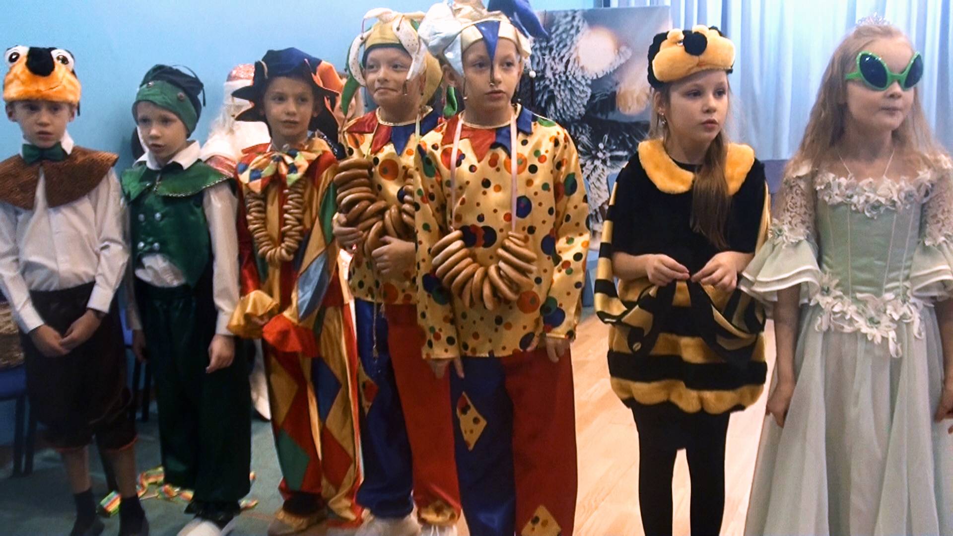 Для ребят из 1-го и 2-го классов зажглась новогодняя ёлка. Поздравить малышей пришли их родители. Гостям праздника был показан спектакль по мотивам детской сказки в стихах Корнея Чуковского "Муха-Цокотуха".