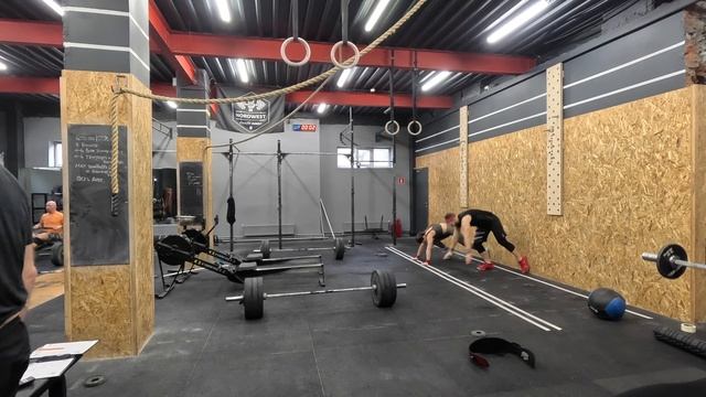 Комплекс комплекс OPEN 25.3 это: Оригинальная (Rx) версия: ... На время: - 5 восхождений на стену - 50 калорий Гребля - 5 восхождений на стену - 25 становая тяга (вес №1) - 5 восхождений на стену - 25 взятий (вес №2) - 5 восхождений на стену - 25 рывков (вес №3) - 5 восхождений на стену - 50 калорий Гребля ... Ограничение (крышка): 20 минут. Вес штанги №1: м-102кг / ж-70кг. Вес штанги №2: м-61кг / ж-38кг. Вес штанги №3: м-43кг / ж-29кг. Масштабированная (Scaled) версия: ... Масштабированные восхождения на стену. Штанги: 61/38кг 43/29кг 29/20кг * 17:35 (время) Обсчитался в первых заходах Комплекс На время, в парах*: 21-15-9-15-21 перешагивания коробки с гантелей берпи через гантель броски мяча *смена атлетов произвольно Крышка: 15 минут 12:00 (время)
