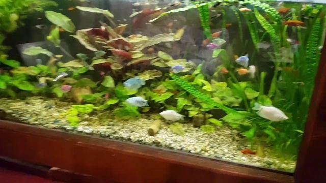 Тишка релаксирует перед аквариумом