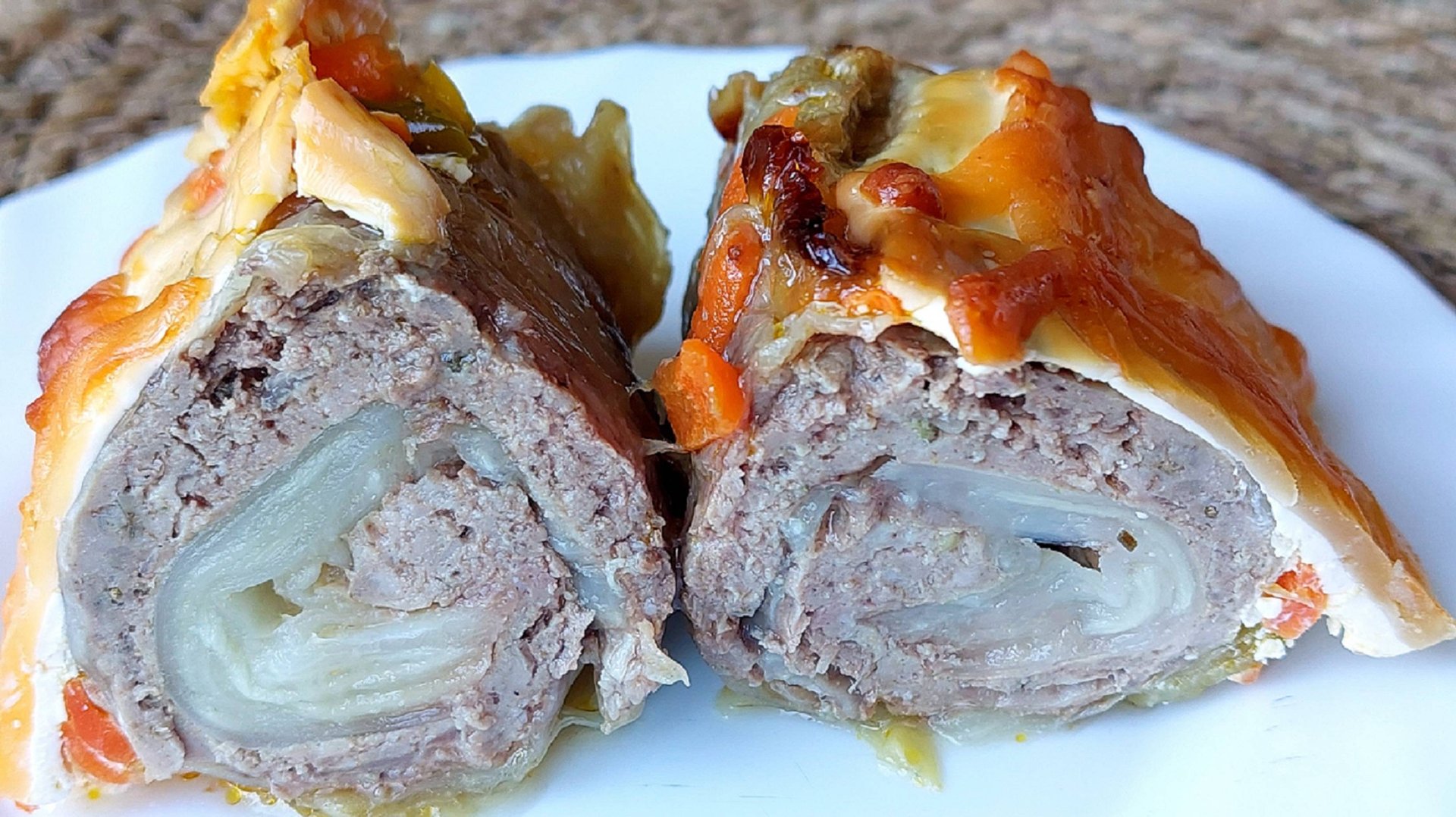 Фарш приготовлен из смеси мяса оленины и свинины. Трубочки сформированы на капустных листьях, фарш нанесён сплошным слоем. В качестве соуса - поджарка из лука, моркови и сладкого перца. Шапочка из сметаны с сыром. Гарнир приготовлен из картошки - толчёнки на молоке со сливочным маслом. ИНГРЕДИЕНТЫ: Мясная начинка: • Фарш свиной – 0,5 кг • Фарш из оленины – 0,5 кг • Приправа для шашлыка – 1 чл • Приправа универсальная – 1 чл • Кориандр молотый – 1 чл • Хмели - сунели – 1 чл • Прованские травы – 0,5 чл • Розмарин – 1/3 чл • Лук репчатый – 2 шт • Чеснок – 5 зуб Капуста: • Листья капусты отваренные– 6 шт Поджарка: • Лук репчатый – 1 шт • Морковь – 1 шт • Сладкий перец – 2 шт • Масло растительное – 3 стл • Соль – 0,5 чл Дополнительно: • Сметана – 400 го • Сыр твёрдый – 120 гр Картофельное пюре: • Картофель – 1 кг • Масло сливочное – 70 гр • Молоко – 400 мл При приготовлении блюда рекомендую ориентироваться на предоставленную видеоинформацию, свой вкус и предпочтения. ПРИЯТНОГО АППЕТИТА!!! Всем мира, бодрости духа и благополучия!