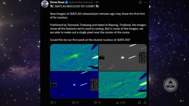 🔔 Новые видео уже готовятся - подпишитесь, чтобы не пропустить интересные материалы! 👍 Проявите активность - поставьте лайк! Ваше одобрение вдохновляет автора! 💬 Поделитесь своими впечатлениями о просмотренном видео. Мы будем рады услышать ваше мнение! 🚀 Не стесняемся, нажимаем ракету! ➦Делитесь видео с близкими и друзьями ... Только что появились новые изображения 3I/ATLAS, и они демонстрируют поведение, которого мы не ожидали. Четкая направленная вперед струя, структурированная кома и возможные сигналы ядра теперь видны в собранных и обработанных данных. Это не симуляция. Это реальные фотонные снимки, полученные из глубокого космоса. Независимые астрономы в настоящее время используют передовые технологии обработки, чтобы выделить структуру из слабого света, выявляя детали, которые обычные снимки с однократной экспозицией просто не могут показать. То, что мы видим, выглядит организованным, направленным и необычно стабильным для межзвездного объекта. В то же время массивный объект за пределами Солнечной системы — C/2014 UN271 Бернардинелли–Бернштейн — продолжает проявлять активность на расстояниях, на которых кометы обычно остаются неподвижными. Вспышки газа на таком расстоянии от Солнца обычно не происходят, и именно это делает этот объект таким интересным для наблюдения. Это не просто кометы. Это объекты, поведение которых мы пока до конца не понимаем — и именно поэтому они так важны. 📚 Источники: • Бен Фредерик (Ben Frederick) / ZWO Astro — 3I/ATLAS stacked imaging • Теерасак Тхалуанг (Таиланд) — кадры с вращательным градиентом и обработкой Ларсона–Секанина • Дрю Досс (Drew Doss) — нить для анализа ядер • MPC (Центр малых планет) — данные об орбите и движении для 3I/ATLAS • Исходное изображение Хаббла — C/2014 наблюдение за ядром UN271 В этом видео рассматриваются реальные астрономические наблюдения, а также их теоретическая интерпретация. Оно предназначено для обсуждения, просвещения и анализа, основанного на любопытстве.
