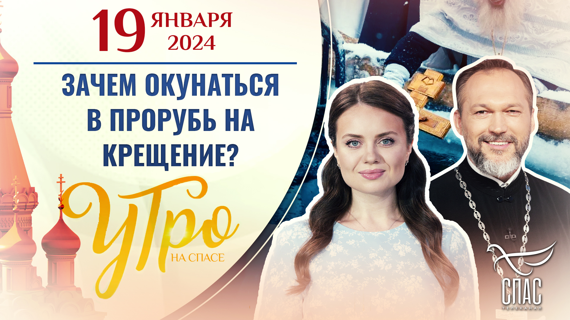 Доброе утро! Сегодня 19 января, пятница. Церковь празднует Крещение Господне. В эфире УТРО на СПАСЕ! С Богом в новый день! ?«Столп веры непоколебИмый». Репортаж из обители преподобного Саввы Сторожевского. ?О главном и второстепенном. Сколько времени стоит уделять хобби и увлечениям? Отвечает протоиерей Максим Первозванский. ?Поможем всем миром! Рассказ о восстановлении уникального Никольского собора – в нашей рубрике «Вернём жизнь храму» ?Обо всём этом мы поговорим в начале нового дня - в эфире программа «Утро на Спасе».