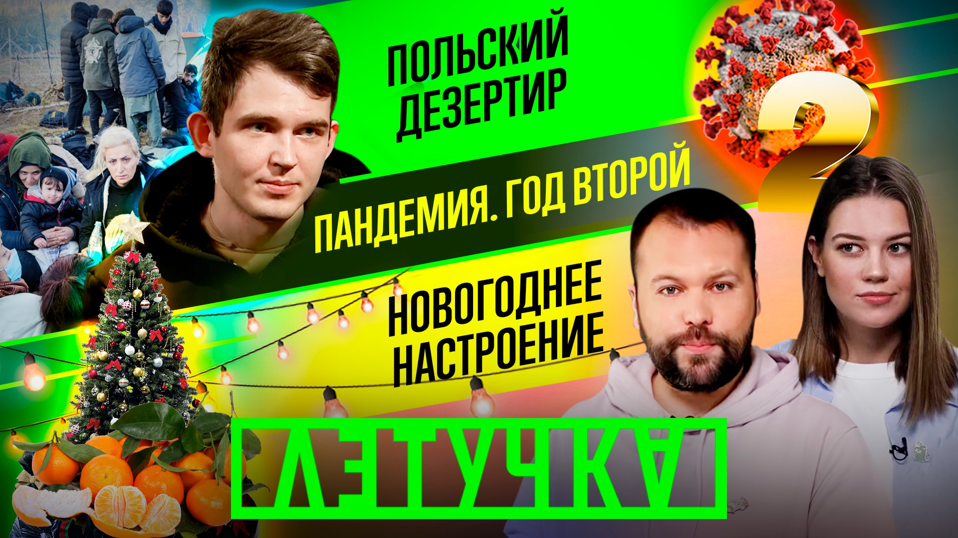 Сбежавший польский солдат Эмиль Чечко дал интервью RT. О том, зачем пошёл в армию. Про «оборот наркотиков» среди польских солдат. О расстрелах беженцев и приказах офицеров. Смотрите в эфире. Георгий Бабаян отправился в «красную зону», пообщался с врачами, которые уже почти два года спасают жизни людей. Самые тяжёлые больные попадают на ИВЛ. Когда применяют этот прибор и как после него восстанавливаются люди. Не пропустите. Последние рабочие дни 2021 года, а новогоднего настроения всё ещё нет? Как его создать — обсудим в эфире. Звоните в прямой эфир через Telegram: https://t.me/Letuchkalive В эфире: Анча Баранова, профессор школы системной биологии Университета Джорджа Мейсона; Виктор Литовкин, полковник в отставке; Александр Тищенко, эксперт по национальной безопасности (Республика Беларусь); Надежда Ручка, певица, экс-солистка группы «Блестящие». В студии — Алёна Нарвская https://t.me/a_narvskaya и Константин Придыбайло https://t.me/pridybaylo, видео «Жизнь после ИВЛ» от Георгия Бабаяна https://t.me/georgebabayan RT на русском https://t.me/rt_russian Канал на RUTUBE https://rutube.ru/channel/23471449/ «Летучка» — 27 декабря 2021 года, понедельник. #COVID #Польша #Беларусь #НовыйГод