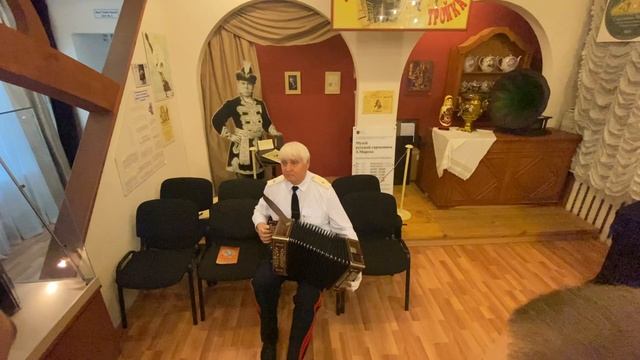 Гармонист, генерал Юрьев Василий Александрович показывает мастер-класс в Музее Мирека.