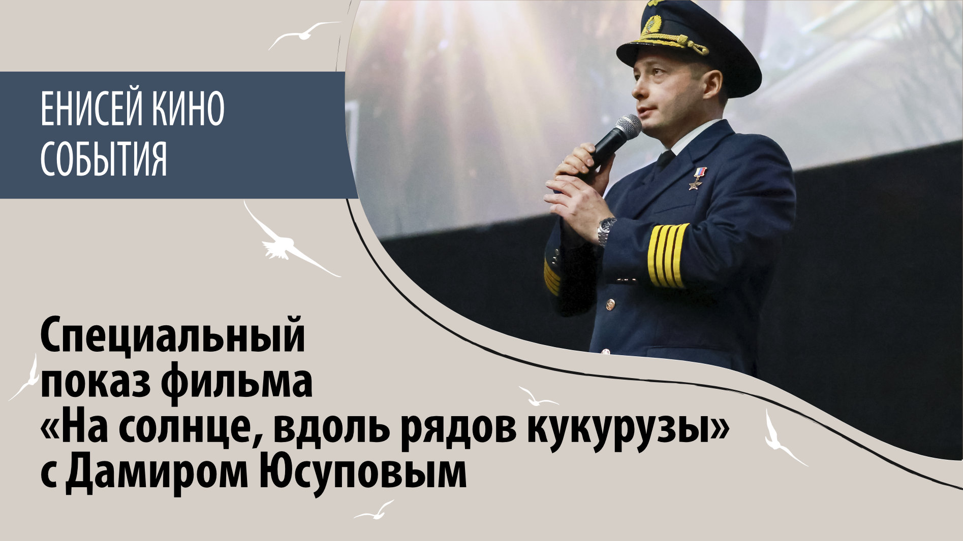 «Это мой родной край, здесь я родился и прожил 16 лет. У меня трепетное чувство к вам», — так начал свою речь Герой России капитан воздушного судна Дамир Юсупов в Красноярске в кинотеатре «Киномакс», ТРЦ «Планета». 19 марта прошла встреча со зрителями во время специального показа фильма «На солнце, вдоль рядов кукурузы». 530 жителей Красноярского края, в том числе, из Игарки, где родился Дамир, пришли в кинотеатр сказать слова благодарности, пообщаться с ним и сделать фото. «Нас судьба разнесла по другим городам нашей страны. Я объехал 10 городов с премьерой фильма и во многих городах встречал своих земляков — это ценно», — делится с красноярцами Дамир Юсупов. На широкие экраны 16 марта 2023 года вышел фильм режиссера Сарика Андреасяна «На солнце, вдоль рядов кукурузы» о подвиге летчика Дамира Юсупова, совершившего удачную аварийную посадку.