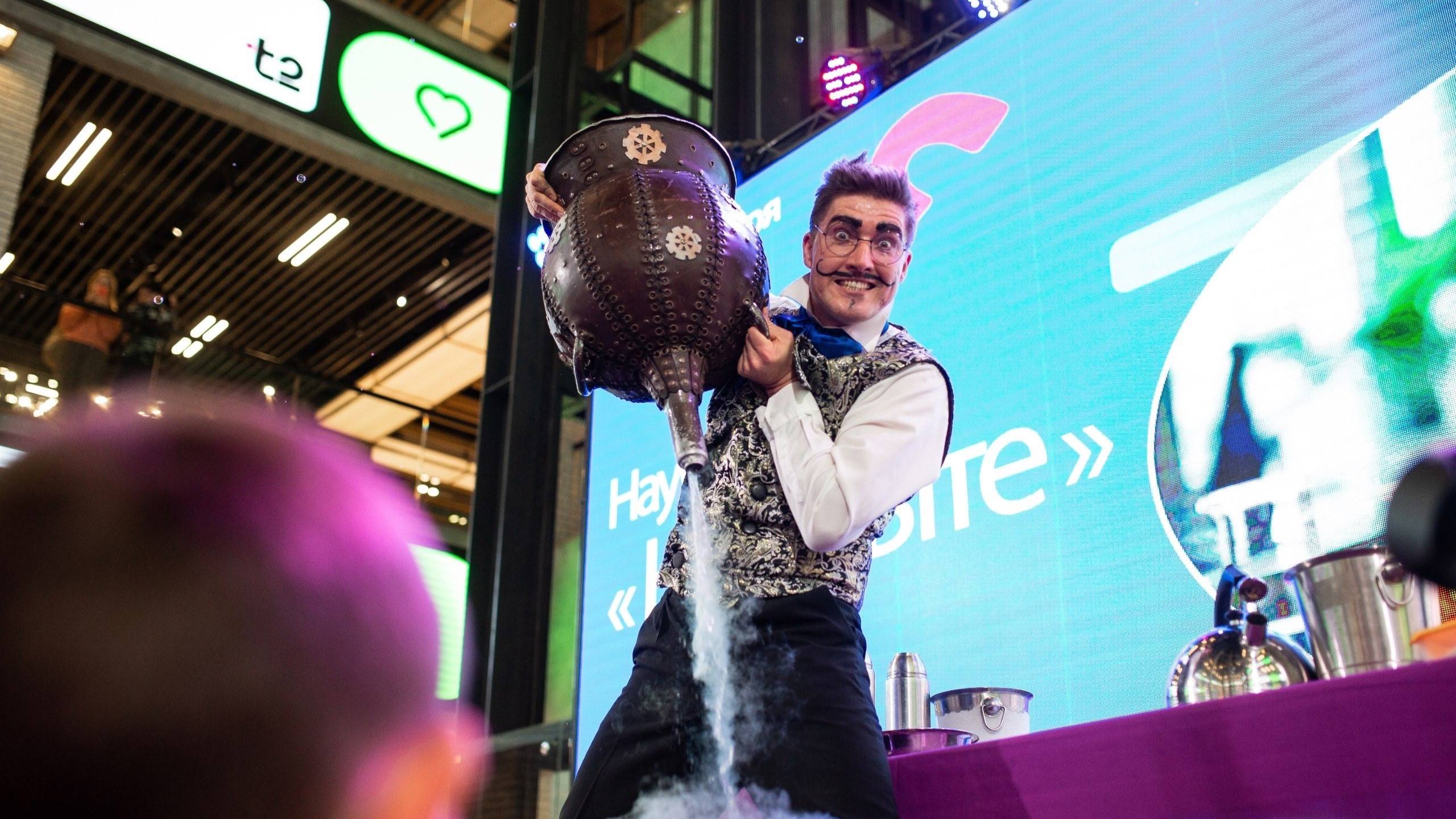 Недавно в ТРК «НЕБО» прошло научное шоу в ТРК «НЕБО, зажегшее интерес гостей. Зрители стали свидетелями удивительных превращений — создание полимерных червяков, опыты с сухим льдом и огромные азотные взрывы. Профессор Бром устроил настоящее волшебство, доказав, что наука может быть не только интересной, но и веселой.