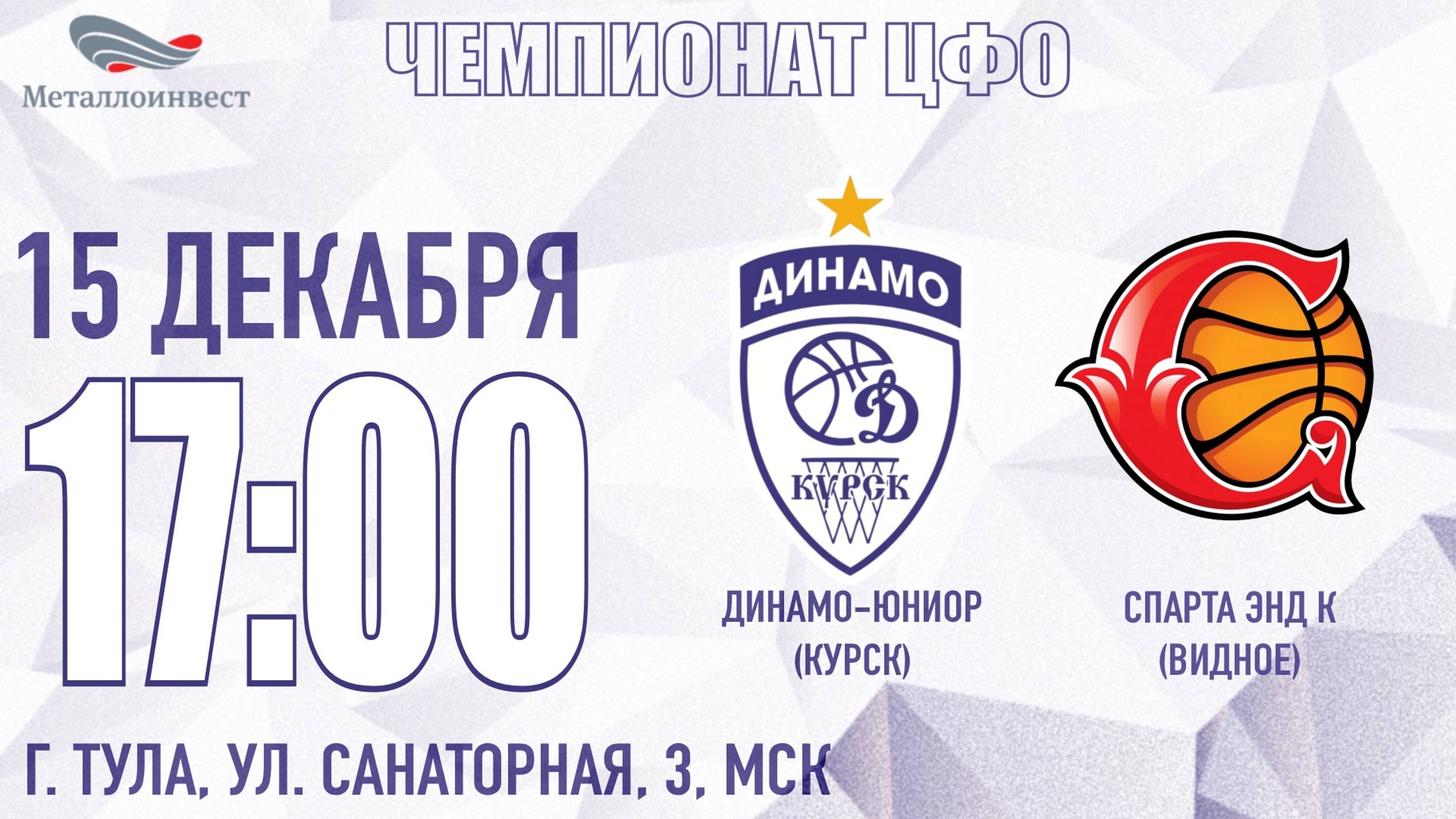 15.12.2024 17:00 Динамо-Юниор (Курск) - Спарта энд К-2009 (Видное)