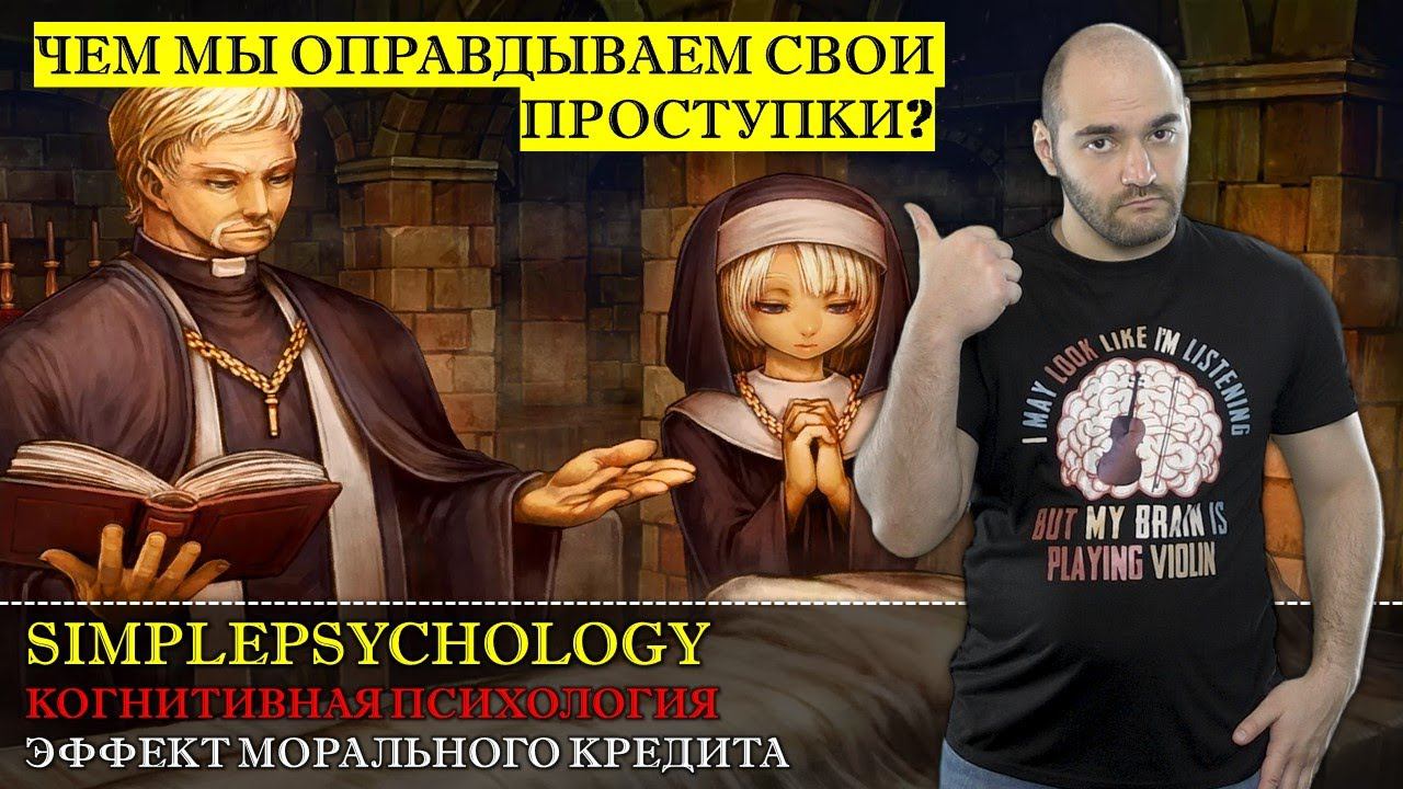 Людям свойственно достаточно странное поведение, например, человек, который только что сходил в спортзал, чтобы похудеть, склонен после наградить себя огромным биг маком. А может вы замечали, что способны потратить большую сумму денег если до этого долго копили их. Но что еще удивительнее это то что люди которые покупают экономичные электроприборы склонны тратить больше электричества, ну а католические священники, которые всю жизнь молились богу склонны растлевать маленьких мальчиков, что же объединяет все эти случаи спросите вы, объединяет их эффект морального кредита и личной непогрешимости. ==== ☛ https://boosty.to/simplepsychology/ref - новые видео и дистанционное обучение ☛ https://www.kopikot.ru?r=7156031 - Кешбек - возвращайте деньги с покупок ☛ https://vk.com/primalinstinct?w=product-25920117_1641234 - Приобрести видеокурс по гипнозу от SimplePsychology ==== Список услуг https://vk.com/primalinstinct?w=page-25920117_53205501 (психокоррекция, создание видео, реклама) ==== Контакты ☛ Instagram - https://instagram.com/gestalthypnotherapy/ ☛ Наш сайт и Я.Дзен канал со статьями. (подписывайтесь) -https://clck.ru/SDU3f ☛ Группа ВК (здесь важные объявления) - http://vk.com/primalinstinct ☛ Канал по психологии - http://youtube.com/SimplePsychology ☛ FB - https://facebook.com/SimplePsychologist ☛ b17 (страница психолога)- https://www.b17.ru/go_2AL ==== Для тех кто хочет поддержать проект: ☛ 41001213871702 - Яндекс кошелек (по возможности используйте этот способ). ☛ 4274320049350609 - банковская карта (Сбербанк) ☛ avdeevps@gmail.com - paypal Деньги будут потрачены на покупку оборудования и организацию различных мероприятий. ======= Спасибо за просмотр! =======