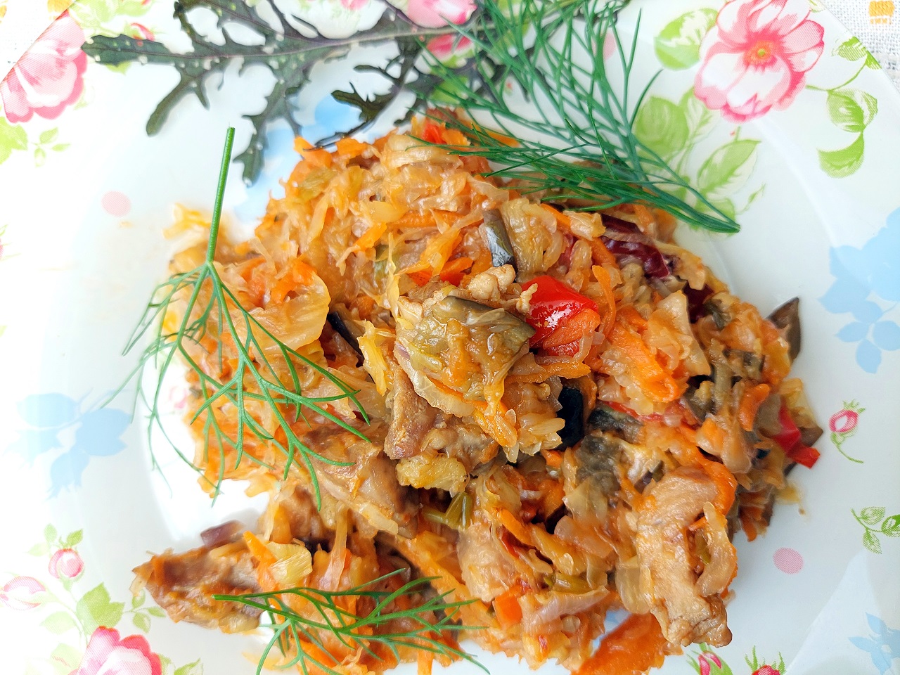 Баклажаны тушеные с капустой. Гармоничное сочетание овощей для сытного ужина или обеда.