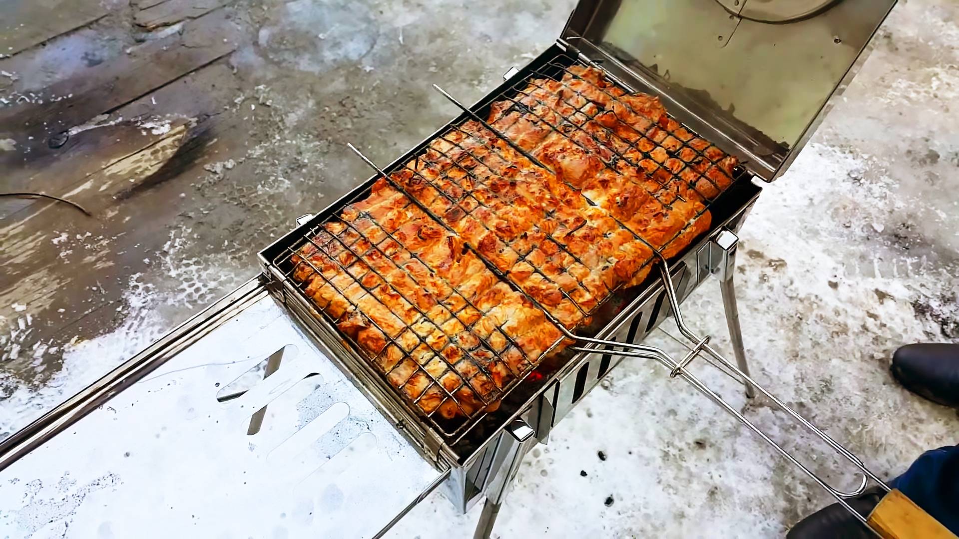 26 марта 2016 г. Часть 2. Сегодня мы провели предсерийные испытания нашей новинки. Это мангал Шикардос МГ-1. От обычных мангалов, которые можно купить в магазинах его отличает несколько важных существенных моментов. Он имеет высокие складные ножки, откидную сервировочную полку, приточное и вытяжные отверстия с безступенчатой регулировкой. И главное - это мангал имеет крышку, что позволяет добиться сочности мяса. Вода не выпаривается из мяса и вкус шашлыка получается волшебный! )) Каждый бантурист, то есть человек путешествующий с мобильной баней Мобиба - должен по идеее иметь с собой какой-то мангал. И мы предлагаем обзавестись вот этим прочным, удобным, надежным и очень функциональным мангалом, который прослужит много лет и будет радовать Вас и Ваших друзей необыкновенно вкусным и сочным мясом-гриль. Большой выбор мобильных бань, палаток, печей, складной мебели на нашем сайте https://www.mobiba.ru/ Обсуждения, отзывы, видео и фотоотчеты по мобильным баням на нашем форуме: https://www.mobibaforum.ru/active-topics.html