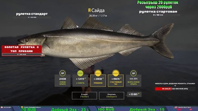 Поддержка донатом https://www.donationalerts.com/r/kalyamba11 Альтернативный донат https://new.donatepay.ru/@1032463 Если стрим лагает,смотри стрим на трово https://trovo.live/s/Kalyamba_na_Ribalke Мой ВК - https://vk.com/kalyantv НИК в игре kalyan11 НАШ ДИСКОРД СЕРВЕР https://discord.gg/mSbnTJK8TB Заказ водоема на 1 час - 500р ( весь стрим 2500р ) Модерка на канале 1200р ( каждая следующая на 100р больше) Озвучка доната на 40р,50р,100р,200р,300р,500р,1000р ✅Призы в рулетке "ЗОЛОТАЯ" ✔ ЗОЛОТО ✔ ПРЕМ ✔ КАТУШКИ РАПТОР 40, АЗИМУТ 10000, СИЛЬВЕР 80, ТАЙГА с 30 ✔ ПАЛКИ ПИЛКЕРНАЯ, ДОНКА МОРСКИЕ, ✔ РОД ПОД, СТУЛЬЯ ✅Призы в рулетке СТАНДАРТ : ✔ катушка "РАПТОР 40" ✔ катушка "АЗИМУТ 10000" ✔ катушка "ТАЙГА С30, С40," ✔ катушки 60 для медного ( ЭВИИ, НАТОРЫ, ГОЛДА, и тд) ✔ ПИЛКЕРНОЕ УДИЛИЩЕ КОРОЛЕВА ОКЕАНА ✔ Морское Донное удилище ✔ прем ( 3, 7, 30 дней) ✔ золото ( 1, 3, 5, 10, 20 ,50) ✔ билет на море ( 1, 3, 5 дней) ✔ голд наживка и др. ✅Призы в рулетке "СТАРТОВАЯ" ✔ катушка "silver80" ✔ катушка "БЕЛЫЙ КАЛИБР" ✔ катушка "Черный калибр" ✔ катушка "Протон" ✔ катушка "Нарга 6000" ✔ Набор Фидерист и спинингист ✔ Карповик Фортуна ✔ фидерные удилища ✔ прем, золото, алкашка, наживки и тд P.s Рулетка это не казино, а награда за поддержку стримера. Вечный ТОП ПОДДЕРЖКИ (11.05.2024) 1. Dimon_pokemonchik 119 784 2. Interceptor 75 508 3. Skreb79 71 261 4. une personne 68 619 5. Нарвал77 31 550