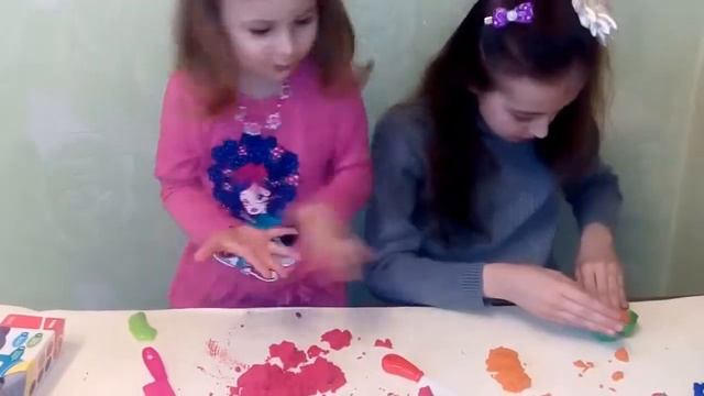Кинетический песок Маша и Настя создают различные фигуры из песка