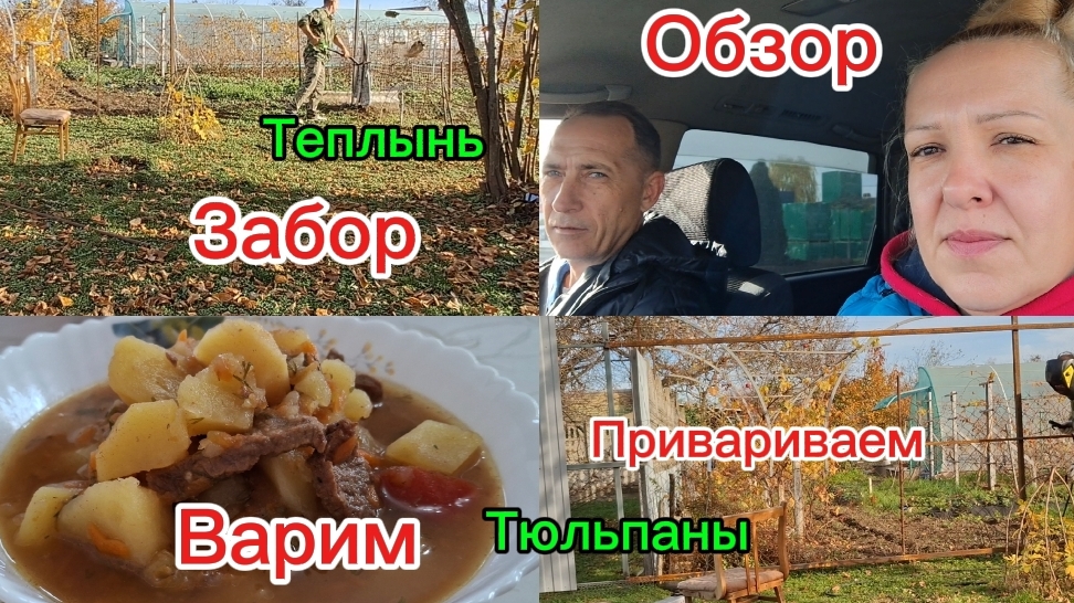 Готовлю обед,подвал,тюльпаны,Обзор,забор.