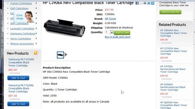 Product Description HP 06A C3906A New Compatible Black Toner Cartridge OEM Model: C3906A Color: Black Quantity: 1 Toner Cartridge Yield: 2500 Note: all products are available to all areas in Canada (Toner cartridges Toronto ON) HP LBP-460, LBP-465, LBP-660, LBP-AX, P 455, Laserjet 3100, Laserjet 3100se, Laserjet 3100xi, Laserjet 3150, Laserjet 3150xi, Laserjet 5L, Laserjet 6, Laserjet 6L http://www.itargeton.com/hp-c3906a-new-compatible-black-toner-cartridge/