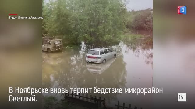 Сточные воды затопили парковку с машинами в Ноябрьске