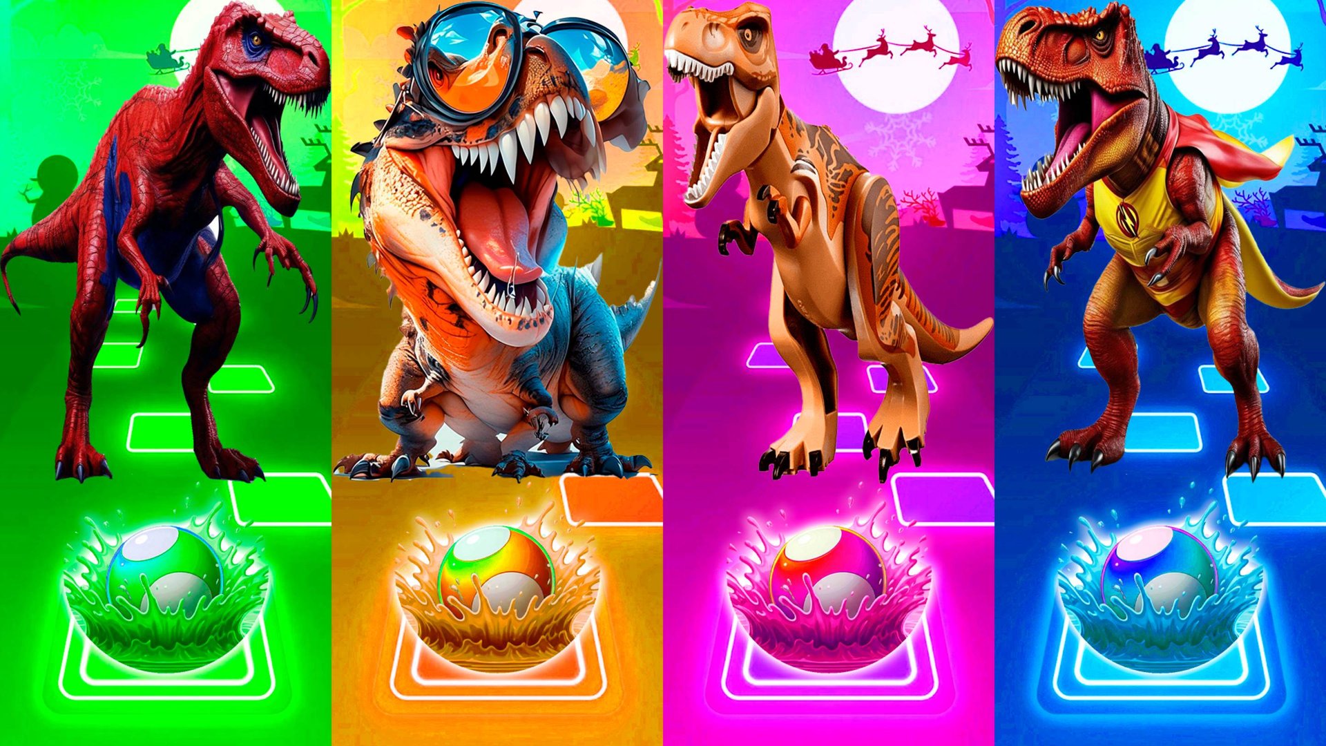 КРАСНЫЕ ДИНОЗАВРЫ vs ОРАНЖЕВЫХ ДИНОЗАВРОВ 185 уровень | МУЛЬТФИЛЬМЫ ДИНОЗАВРЫ в Tiles Hop