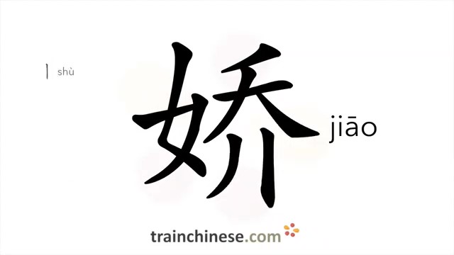 娇 (jiāo) delicate, charming; loveable; pampered; frail; fragile, soft; to pamper, spoil