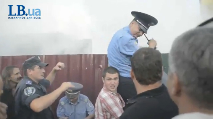 Охрана скандальной стройки по ул. Маяковского, 4 на Троещине в Киеве применила силу против активистов, решивших сломать забор, установленный накануне. Когда более 50 местных жителей при поддержке активистов партии "Свобода" попытались сломать забор, охрана, вдвое превышающая числом активистов, начала забрасывать их землей, а вскоре применила огнетушители, слезоточивый газ и жидкость, напоминающую мазут. Отбив атаку, защитники стройки перешли в наступление. Один из них ударил одного из активистов в лицо так, что пошла кровь. У девушки, которая снимала происходящее на камеру, разбита рука. По некоторой информации, в нее попал камень.