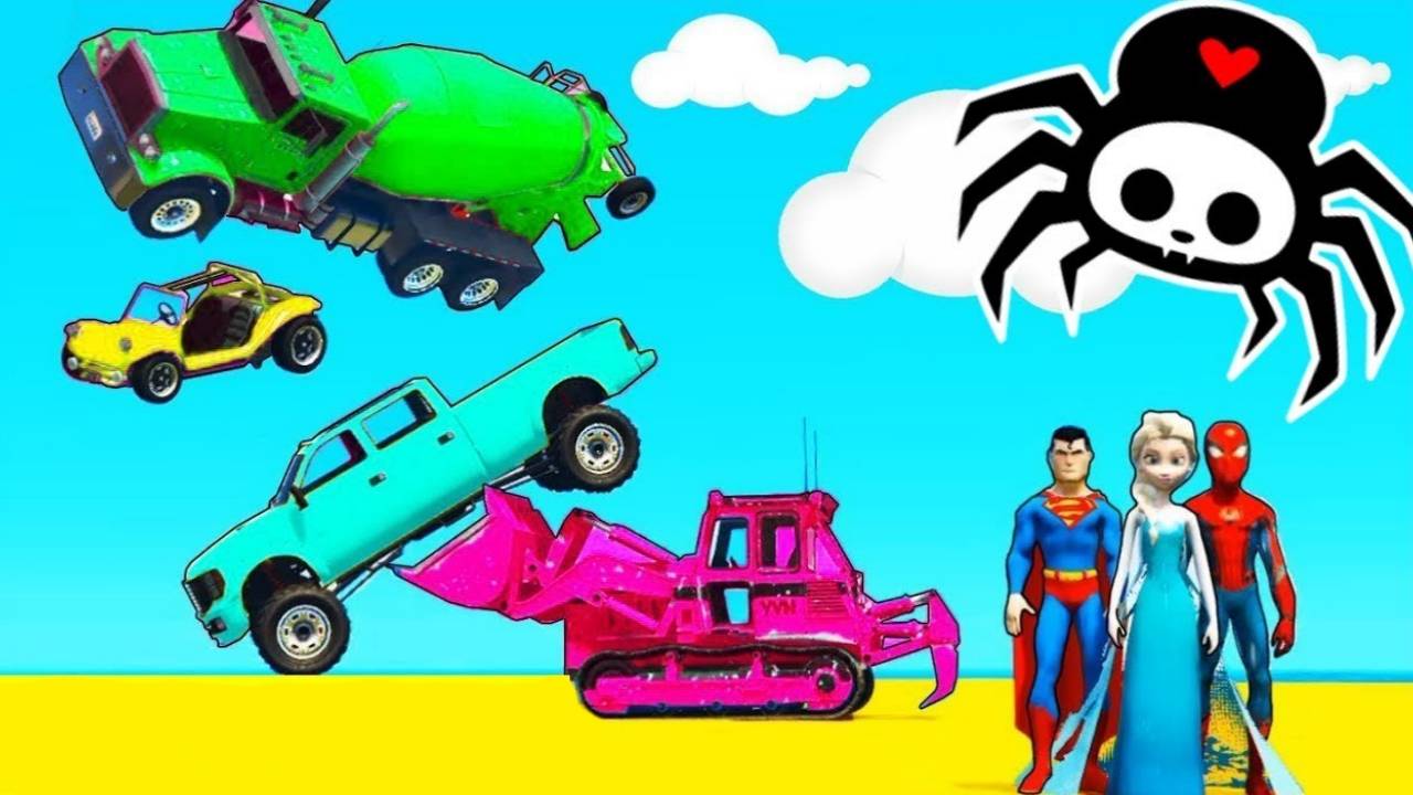 Мультики для детей Цветные Машины и Грузовики Мультики про машинки и Веселые Супергерои