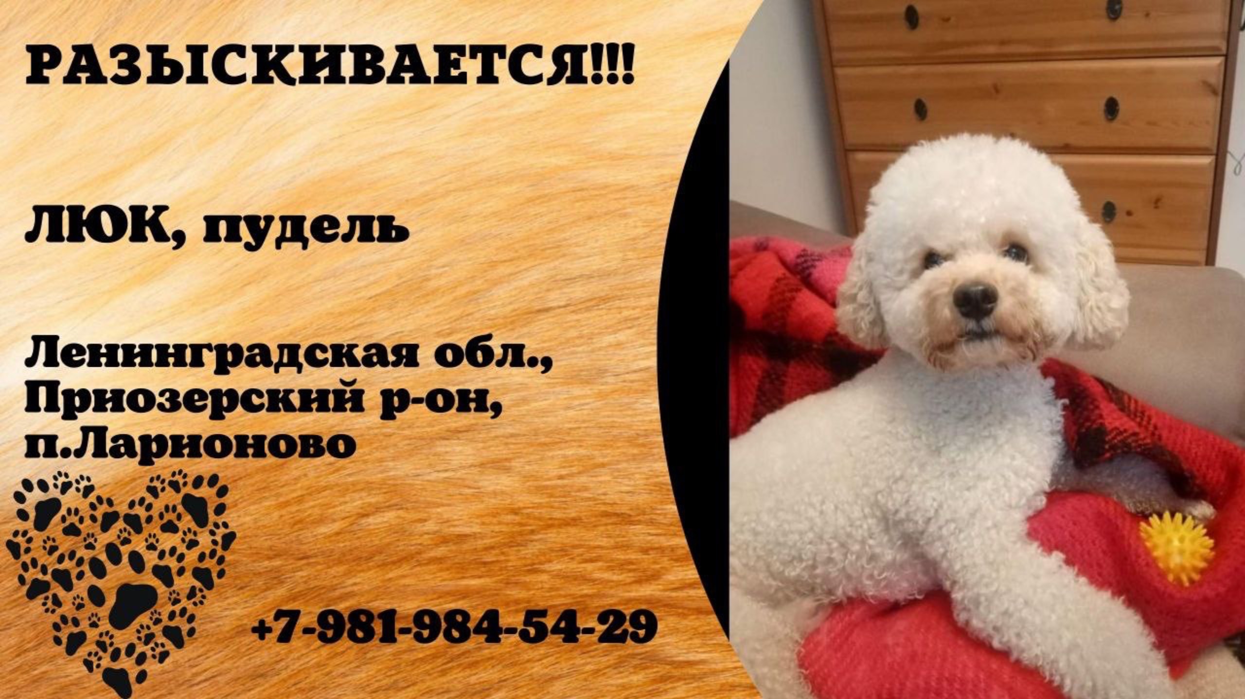 Пропала собака! ЛЮК, пудель. Ленинградская обл., Приозерский р-н, п.Ларионово.