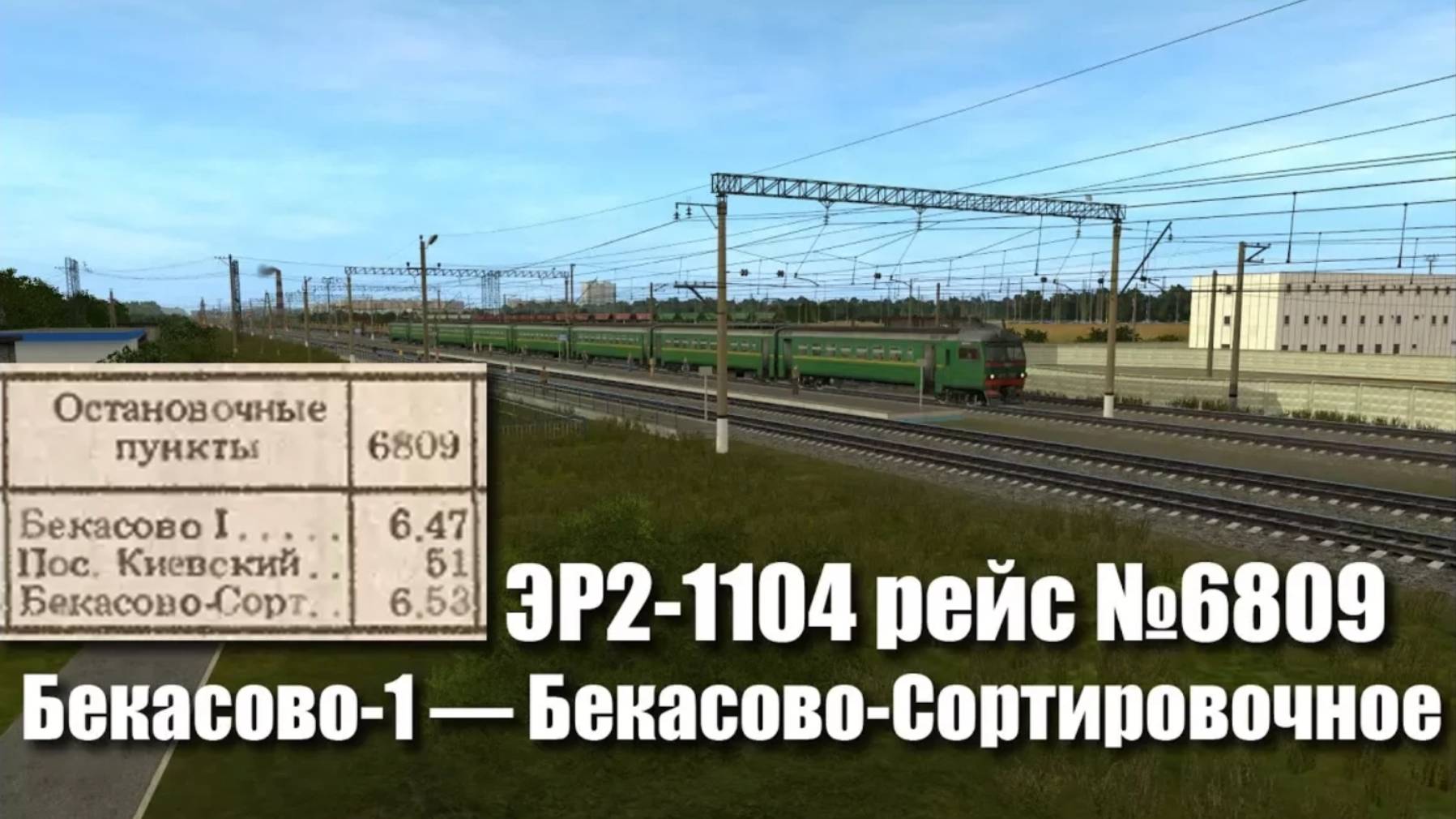 Trainz: ЭР2-1104 рейсом №6809 Бекасово-1 — Бекасово-Сортировочное, 1991