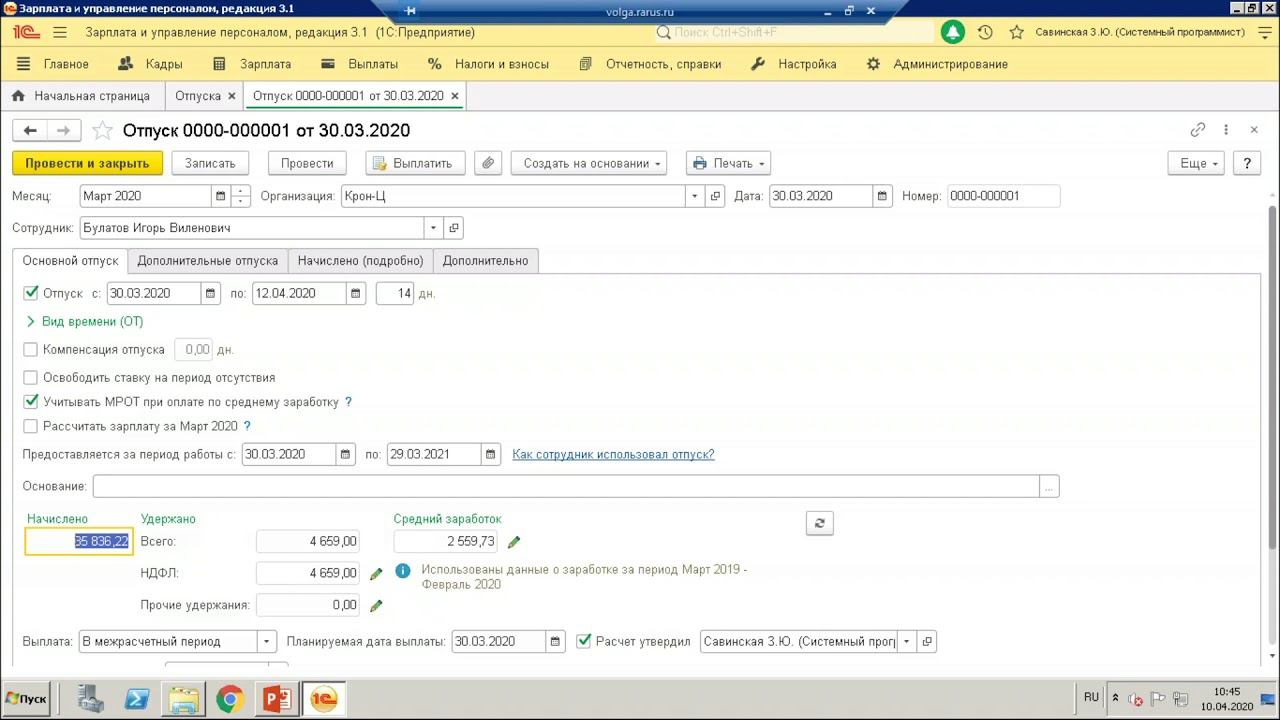 Запись вебинара от 10 апреля 2020. Рассказываем об изменениях в оформлении отпуска в решении "1С:Зарплата и управление персоналом" в период с 30.03.2020 по 30.04.2020