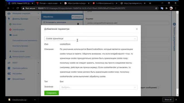 Рассказываем о примере создания сервиса для мониторинга погоды с использованием интеграционной платформы FESB. Описаны шаги по настройке взаимодействия с API Яндекс.Погоды и Telegram для отправки уведомлений о дожде. Пример демонстрирует, как с помощью констант домена, точек обработки и глобальных переменных можно быстро реализовать схему обработки сообщений с логикой отслеживания изменений в прогнозе погоды. Дата публикации: 25 августа 2020 г.